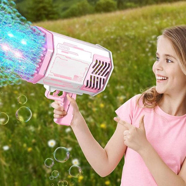 Paceliet savus pasākumus ar BUBBLEPUFF 69 caurumu LED burbuļu pistoli, kas radīta, lai radītu apburošu burbuļu straumi, kas aizrauj gan bērnus, gan pieaugušos.
