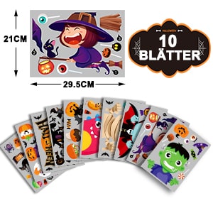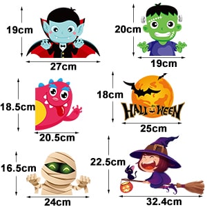 - Izmērs: Helovīna logu uzlīmes, kas sastāv no 10 uzlīmēm, katra 21 x 29,5 cm.